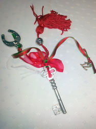Porte bonheur avec monnaie grecque riche en couleurs et fait en Grèce