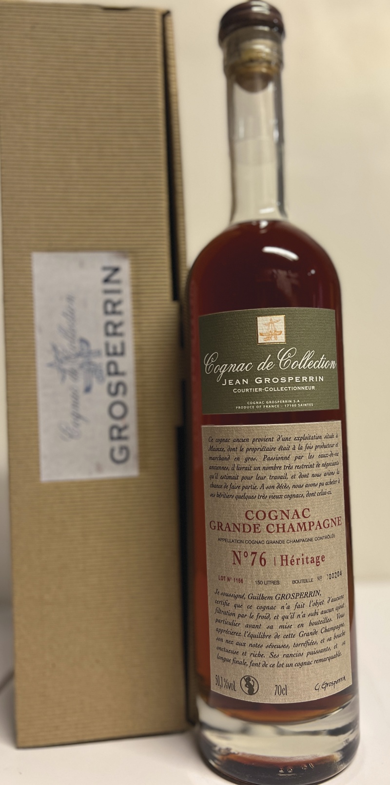 Comme le 15 ans , ce cognac provient d'une exploitation située à Mainxe. Robe très ambrée. Au nez, montant élégant, notes de vieux balsamique, infusion de cannelle, pruneaux, bois de rose. En bouche attaque franche et très dense. Beaucoup d'onctuosité et d'équilibre. Finale légèrement tannique et très longue. Un très beau cognac.