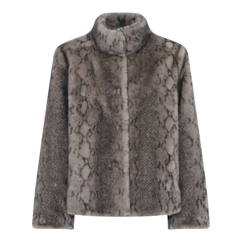 Manteau fausse fourrure femme, imprimé python gris fondu