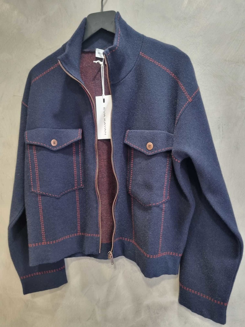 Veste courte avec un col montant et une fermeture zippée. Sa matière épaisse apportent une belle structure à la silhouette.