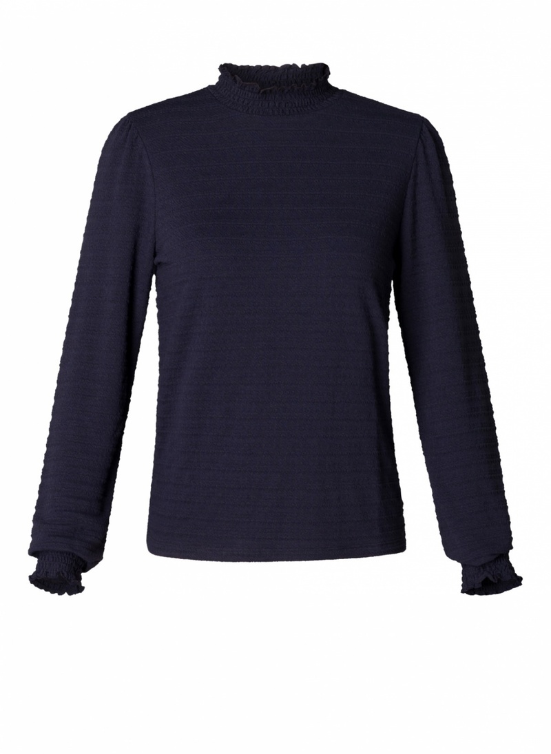Adoptez l'élégance discrète avec ce magnifique sous-pull YEST, la pièce parfaite pour rehausser vos tenues d'automne et d'hiver. Conçu dans un coloris bleu marine profond et intemporel avec une subtile texture en relief, il apporte une touche sophistiquée à chaque silhouette.