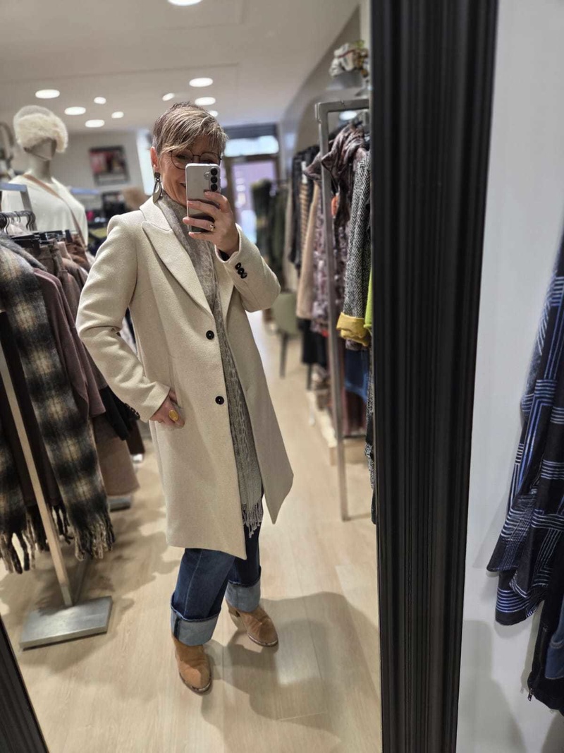 La Coupe : Il arbore une coupe droite et longue idéale pour structurer la silhouette. C'est le classique du dressing, facile à superposé !
