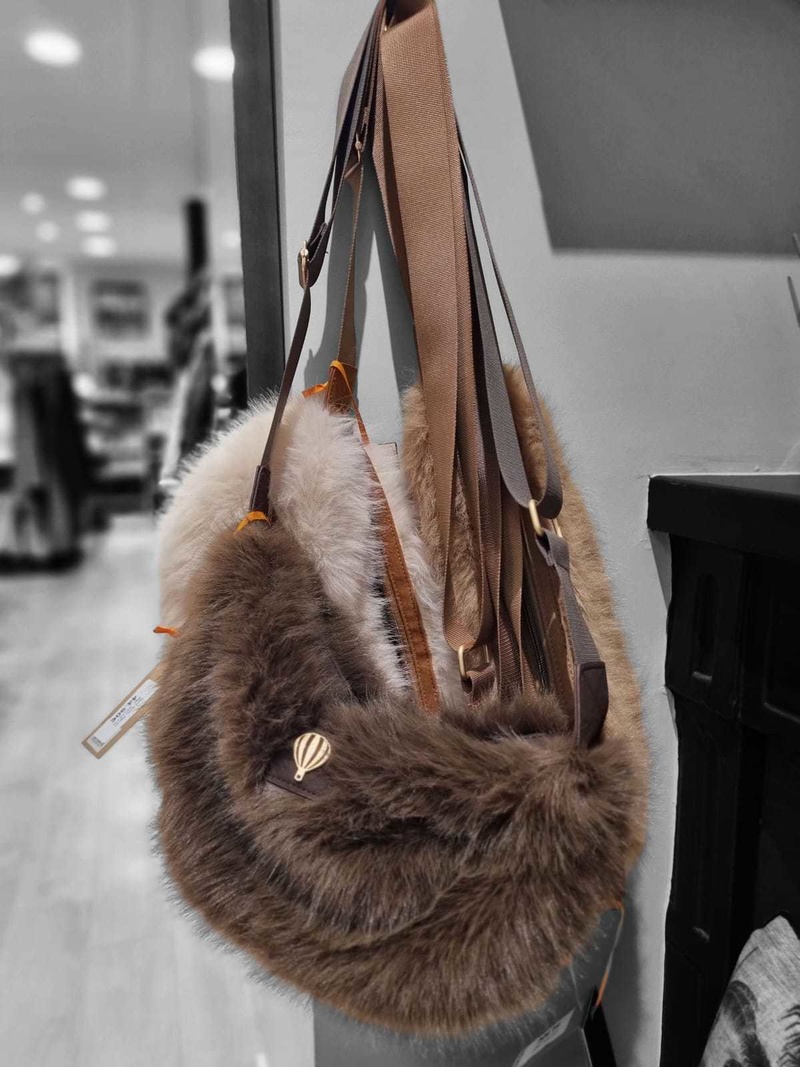 Sac à bandoulière en fausse fourrure douce pour donner un look chaleureux à vos tenues d’hiver.