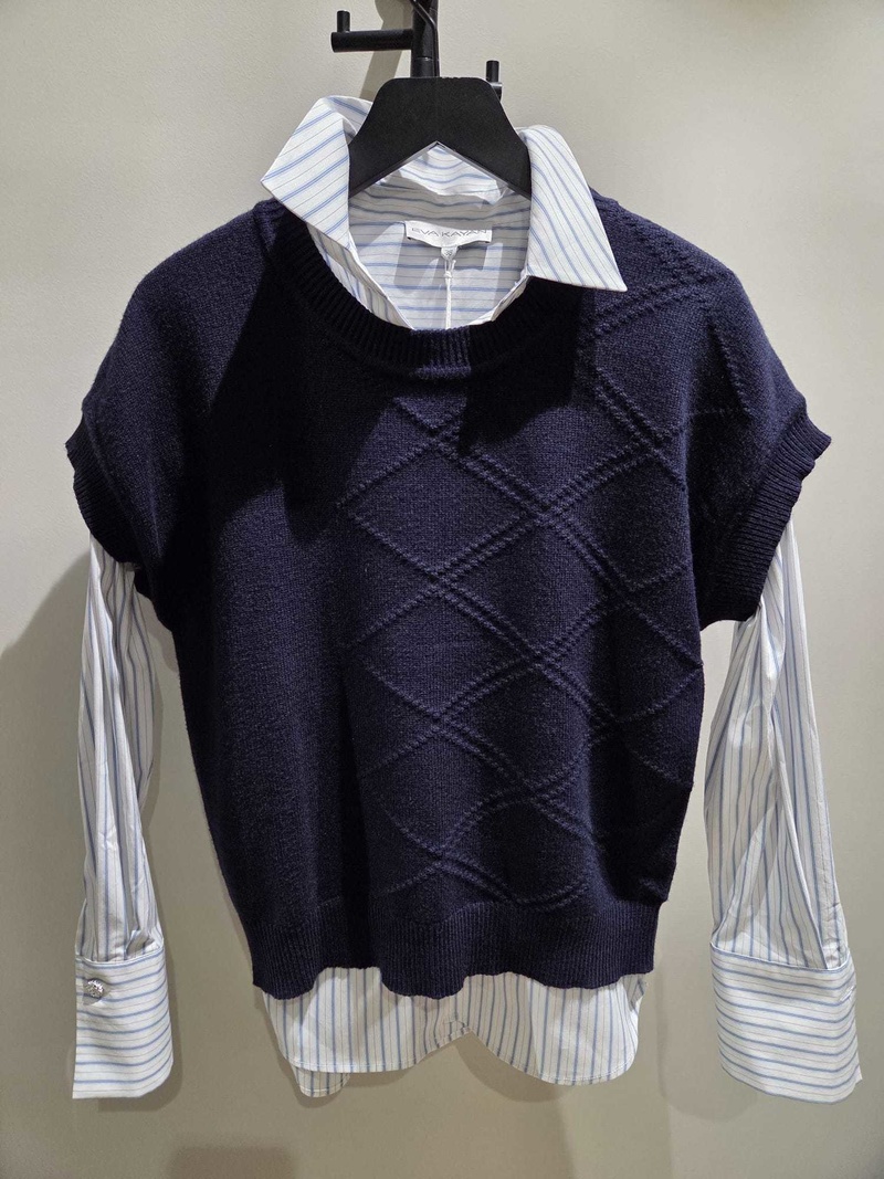 PULL SANS MANCHES BLEU MARINE MICHA ANN MODE DIJON - Voir en grand