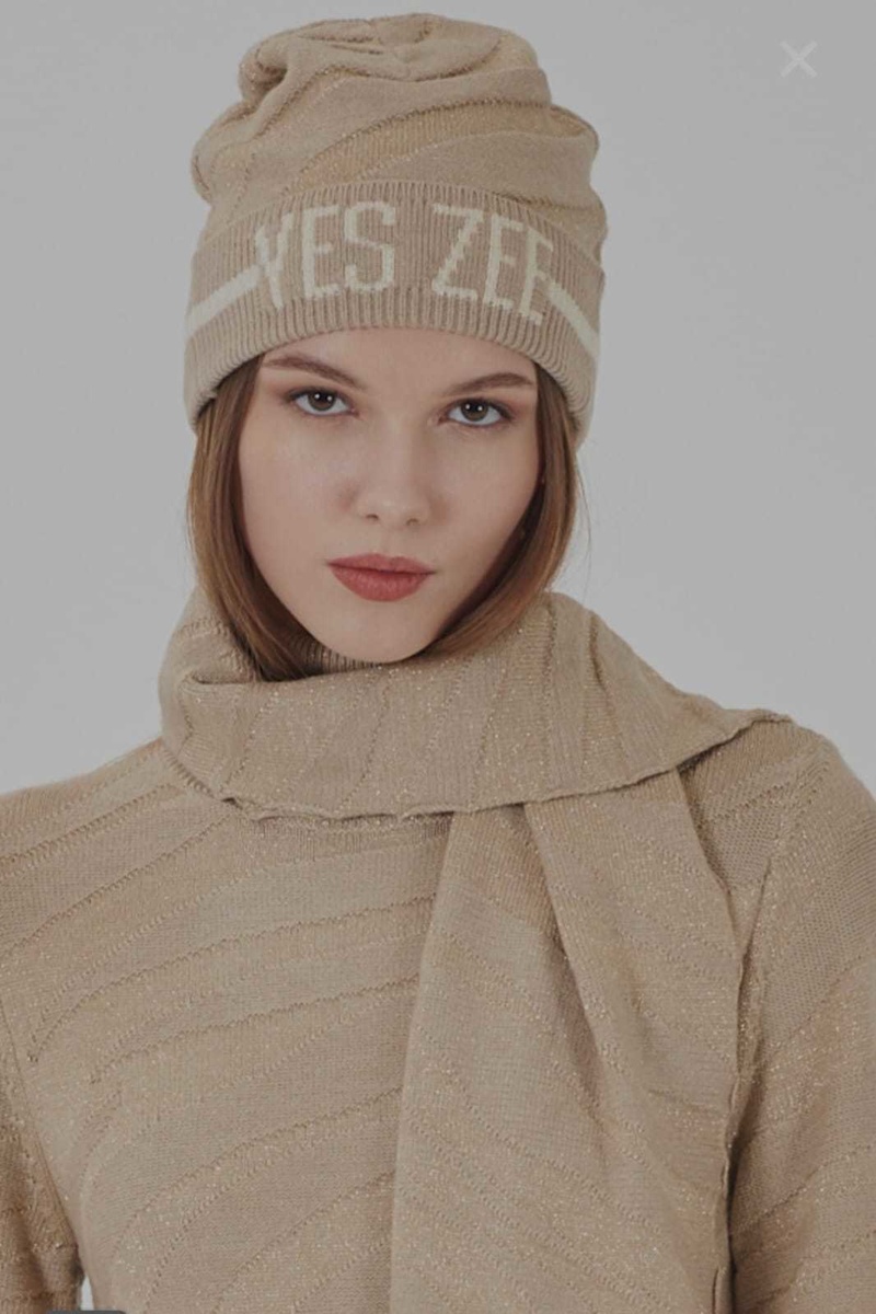 Découvrez notre magnifique coffret YesZee composé d’un bonnet et d’une écharpe beige sublimés par de délicates paillettes.