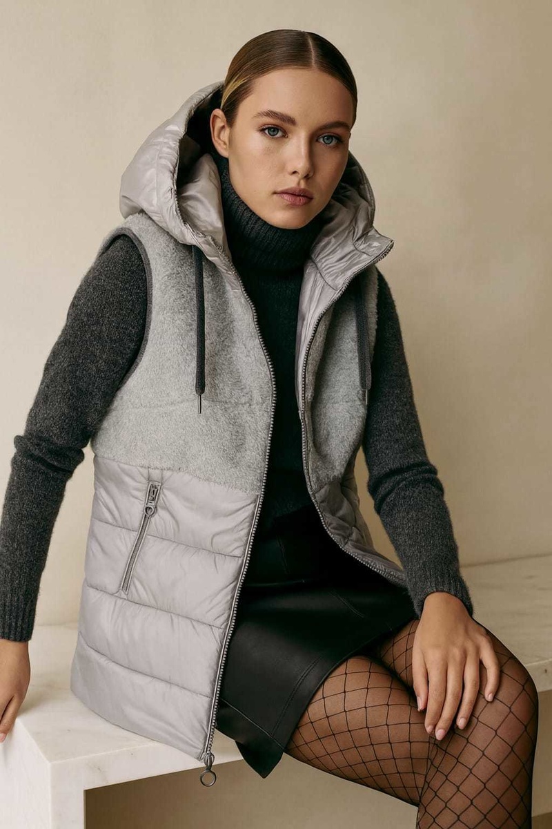 Ce gilet long sans manches est la pièce parfaite pour allier tendance et confort avec brio. Son design sophistiqué se distingue par un mariage de textures unique.