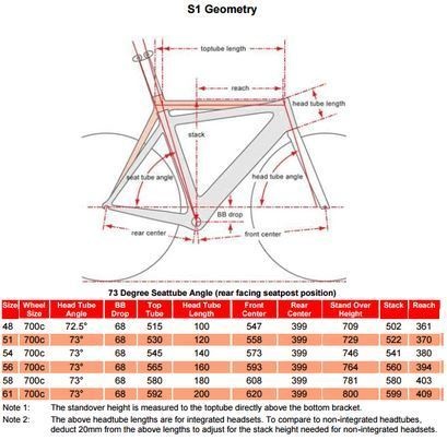 Taille 50 (54 côtes Cervélo voir tableau de géométrie ci-joint): pour une personne de 1.65 à 1.78m environ