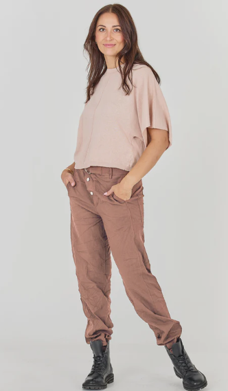 Ils présentent une coupe sublime créant un look simple et intemporel parfait pour un style casual chic. La fermeture frontale est diagonale avec un bouton, et un biais ceinturé avec une boucle métallique ajoute une touche stylée et moderne. À l’arrière, le design reste épuré avec des passants de ceinture et des surpiqûres qui soulignent la forme.