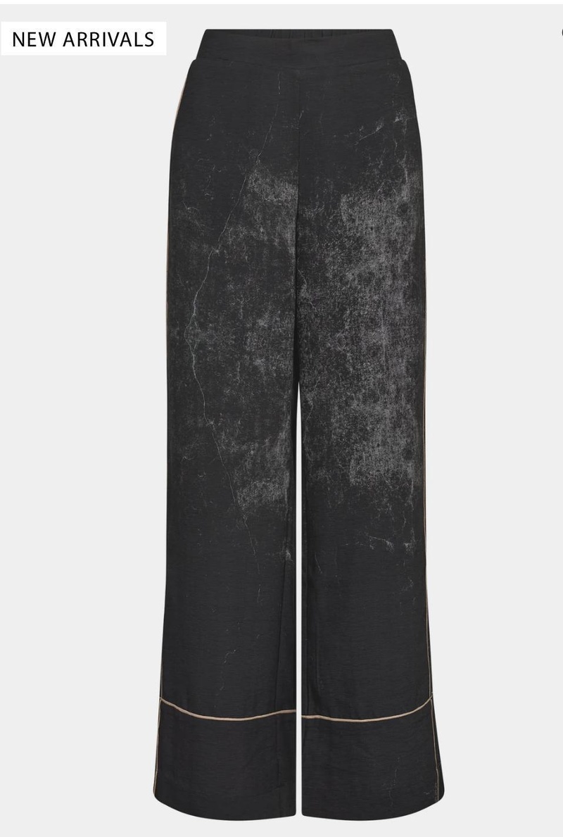 Ce pantalon fluide noir séduit par son détail de bande graphique sur le côté, qui allonge la silhouette et apporte une touche moderne et tendance.