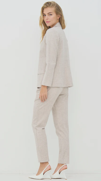Sa douce et lumineuse, apporte une touche élégante et originale à la tenue. Son léger motif vertical crée du relief et allonge visuellement la silhouette, pour un rendu chic sans effort. Ce blazer est idéal pour celles qui recherchent une pièce forte, à la fois tendance et intemporelle.