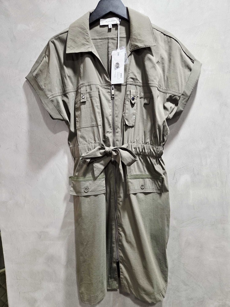 Succombez au charme de la Robe EVA KAYAN, un modèle au style saharienne moderne signé EVA KAYAN. Sa coupe arrivant au genou et sa ceinture élastiquée avec joli n½ud à nouer sur le devant mettent la silhouette en valeur avec féminité et confort.