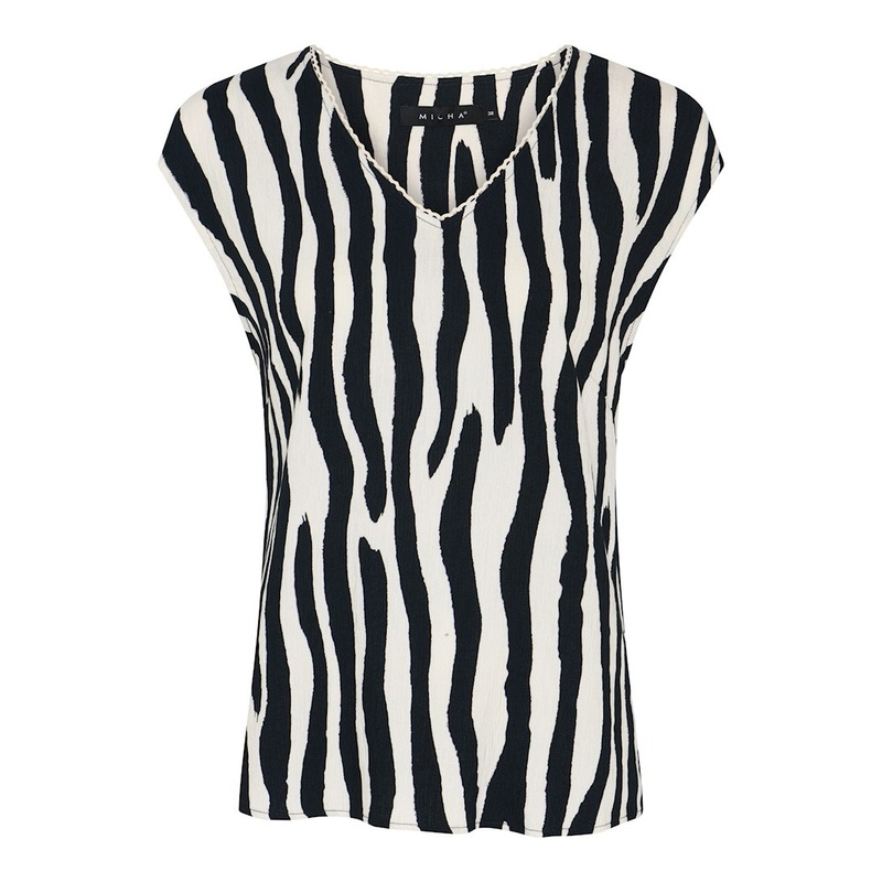 Craquez pour ce sublime top imprimé zèbre Micha, confectionné dans le même tissu fluide et agréable que le pantalon assorti.