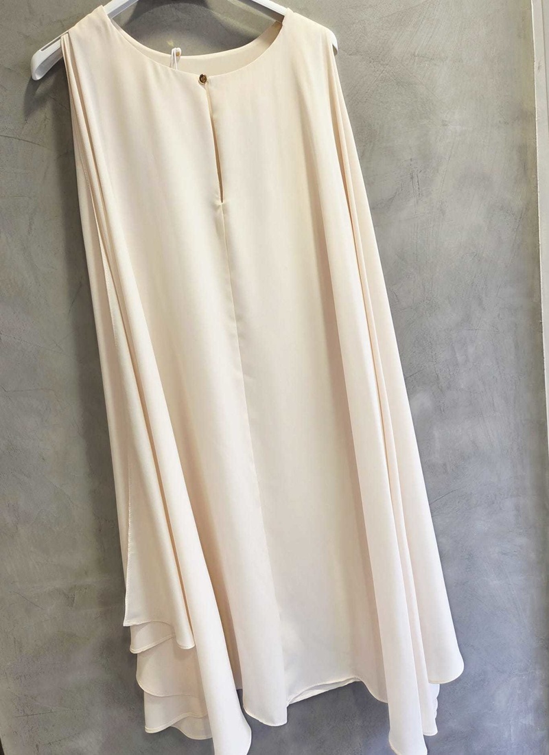 Cette robe de la collection limitée Lokita Milano vous séduira avec son effet de cape aérienne dans le dos pour un look féminin sublime
