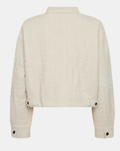 Conçue dans un mélange de lin, coton et polyester, cette veste est légère, confortable et extrêmement facile à porter, avec des coutures visibles qui ajoutent du caractère et une touche contemporaine à l’ensemble. Les manches longues avec poignets à pression complètent l’esthétique moderne tout en assurant une finition soignée.