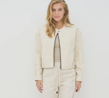 Cette veste au look minimaliste et structuré offre une silhouette nette grâce à sa coupe droite contemporaine et à sa fermeture zippée frontale, parfaite pour un style urbain chic ou casual sophistiqué. Le col montant élégant donne une allure raffinée tout en renforçant le confort et la protection lors des journées plus fraîches ou changeantes.