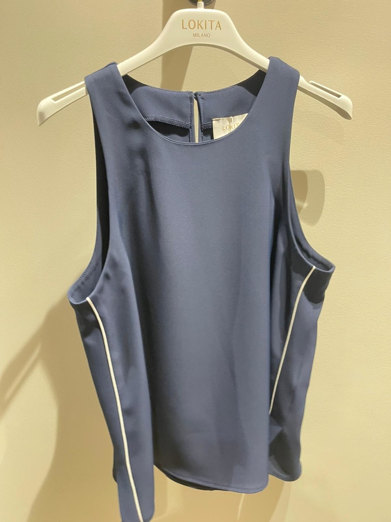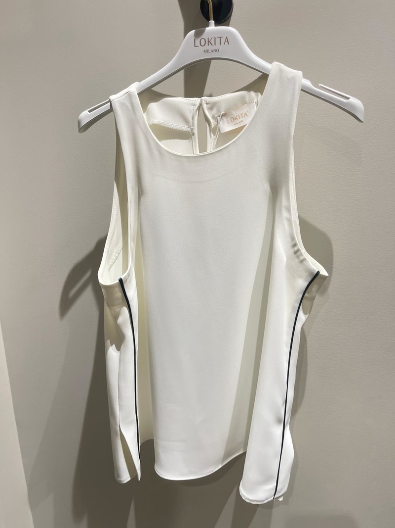 Ce top sans manches Lokita Milano incarne la sophistication moderne. Avec sa coupe trapèze fluide et son col délicat, il structure la silhouette avec une grâce aérienne.