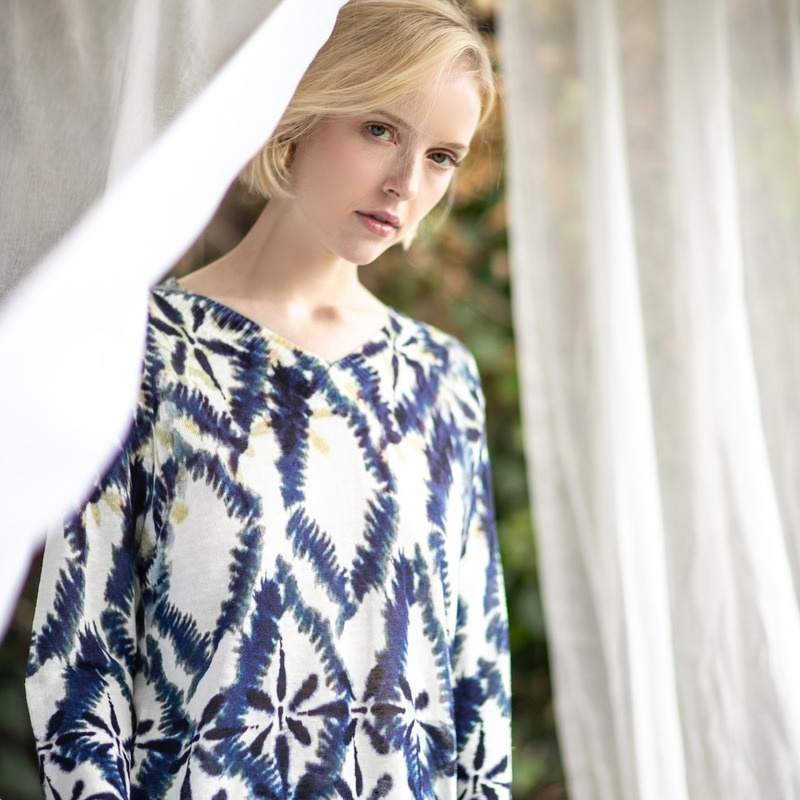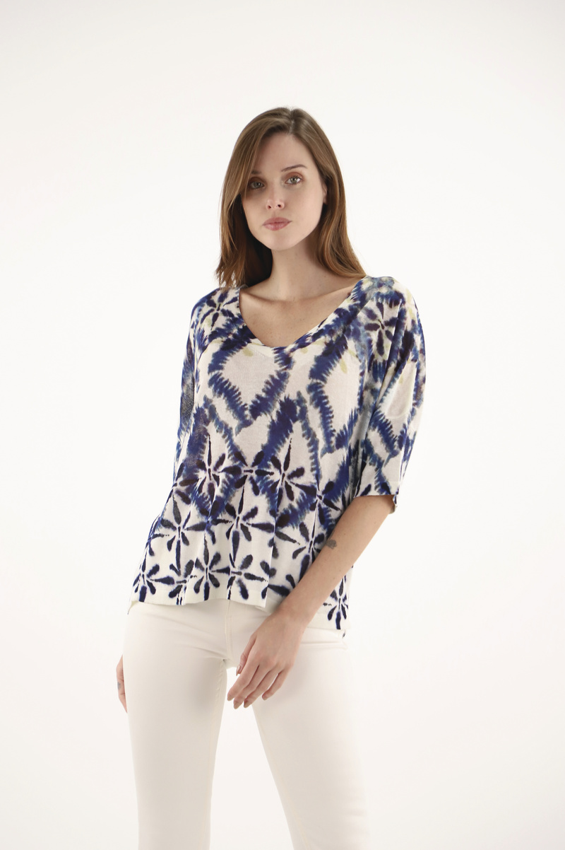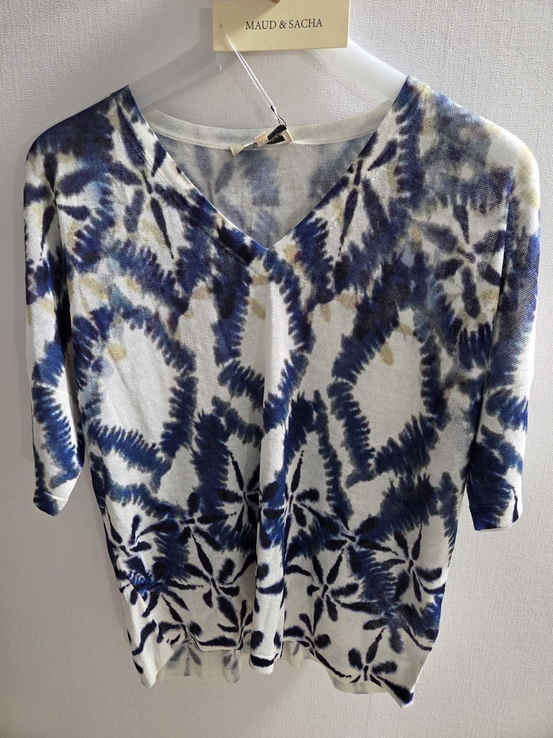 PULL FLUIDE COL V TiE & DYE BLEU MAUD ET SACHA