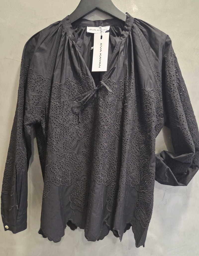 Blouse noire en broderie anglaise EVA KAYAN l'élegance bohème chic